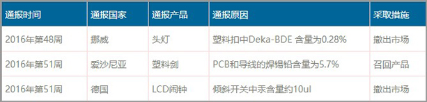 ample, in the 48th and 51st weeks of 2016, the EU has added three RoHS non-compliance cases, of which Deka-BDE and mercury content violations have not been previously released.